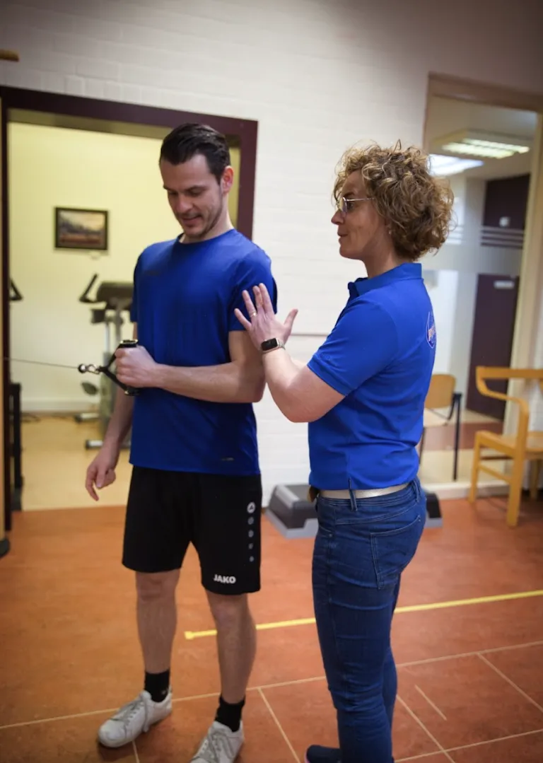 Samen met de fysiotherapeut ga je aan de slag om de klacht te verhelpen. Je doet oefeningen onder begeleiding, en je krijgt oefeningen mee die je thuis kunt doen om je lichaam verder te versterken.